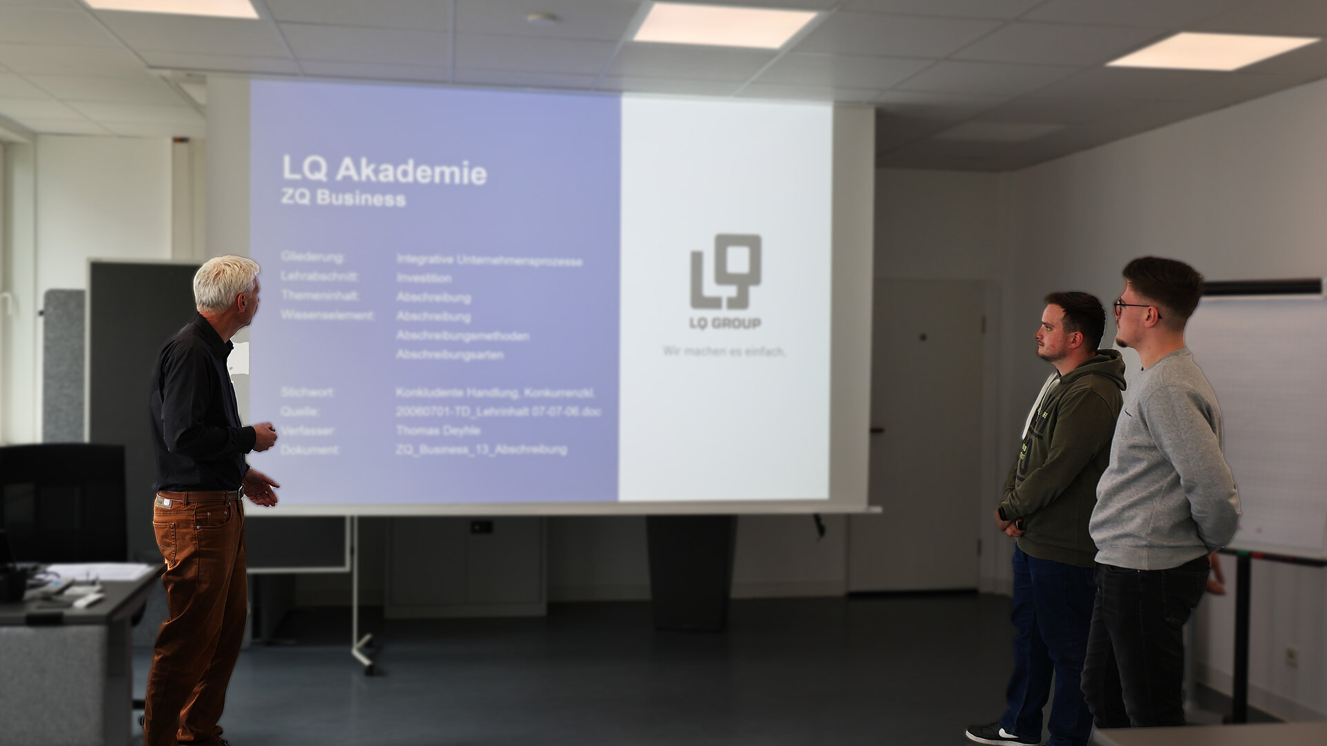 Bei LQ legen wir großen Wert darauf, unsere Mitarbeiterinnen und Mitarbeiter bestmöglich zu fördern. Eine Möglichkeit dazu bietet die interne Plattform der LQ Akademie. Unser Ausbildungsleiter Thomas Deyhle vermittelt derzeitig entsprechende Lehreinheiten zur Zusatzqualifikation Business für Logistiker, die sich für kaufmännische Positionen interessieren. Ziel ist es, ihr volles Potenzial zu entfalten.