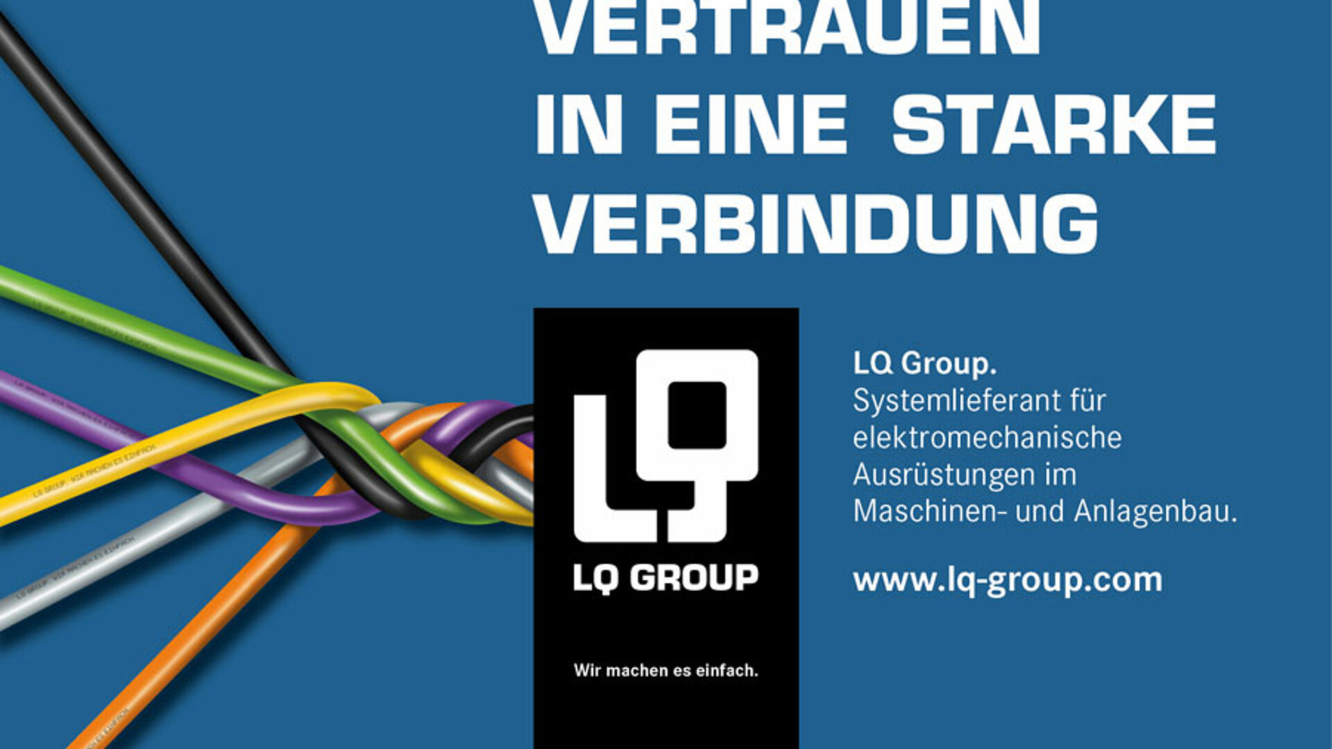 Für ein aussagekräftiges Symbol hat sich das LQ-Marketing-Team bei der Auswahl des neuen Anzeigenmotivs entschieden. Ein Freundschaftsband aus Kabeln in den Standard-Farben der Elektronikbranche steht künftig für Vertrauen in eine stabile Geschäftsbeziehung und in hochwertige Produkte von LQ Mechatronik-Systeme.