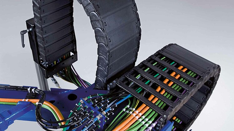 In order to offer a cohesive overall system that will work reliably over a long cycle, it is important to have precise knowledge of the characteristics of the individual components and also to position the cables and hoses in the best possible position in the plastic housings. This involves making provision for the bending of the individual cables, as well as the dynamic way in which the cable drag system moves.